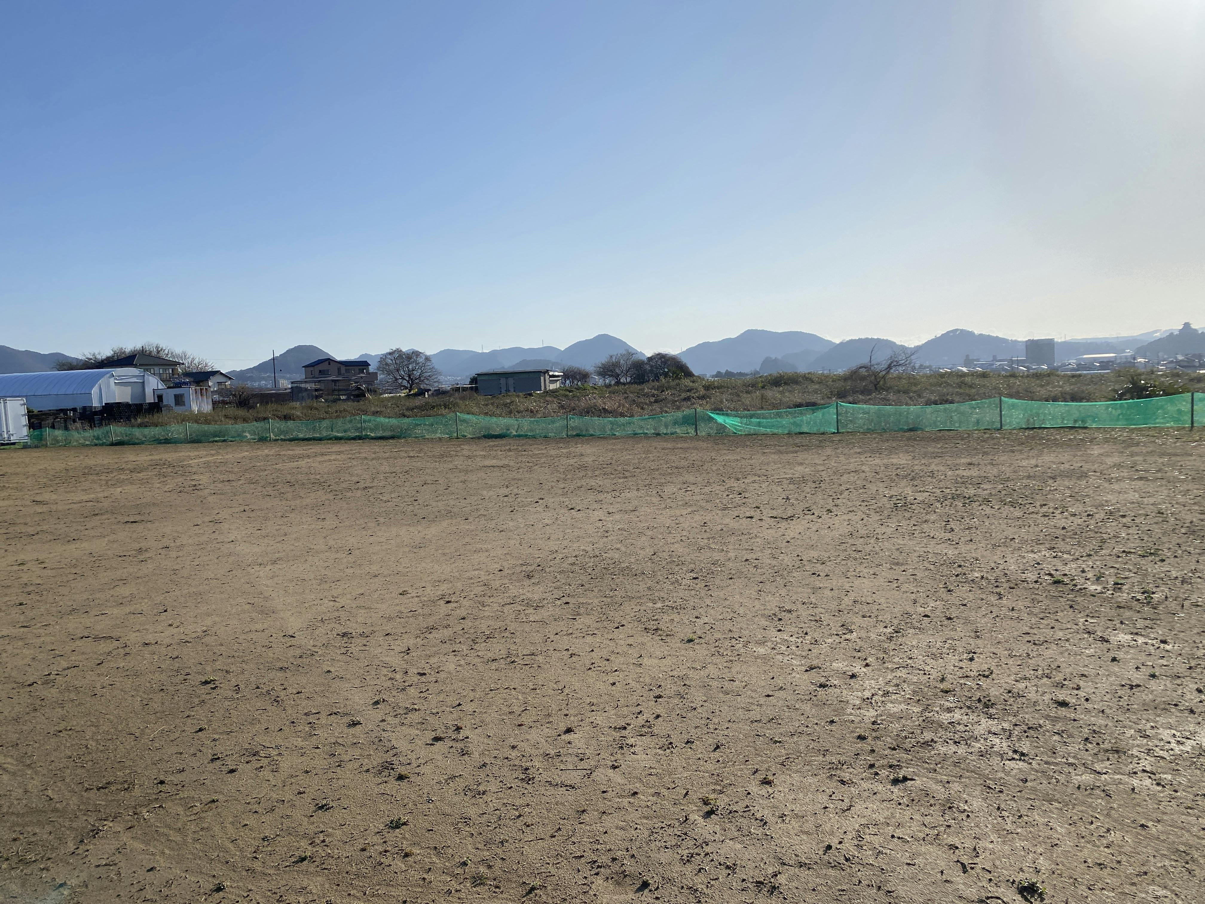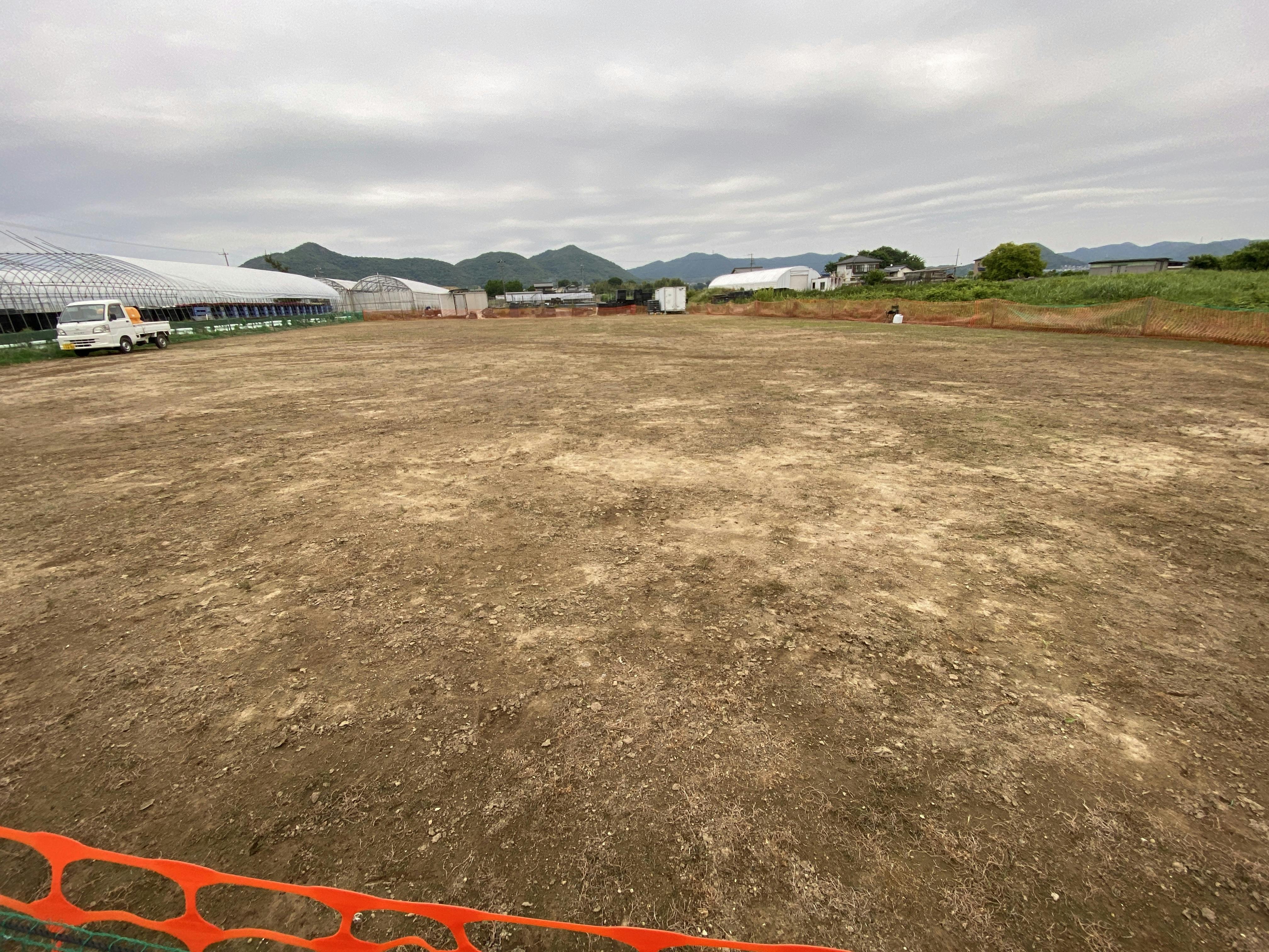 フィールドの場所を確保し、整地、簡易ネット張り、仮設トイレ・コンテナの設置までやりました。現在は、雑草取り・石の除去を行っています。