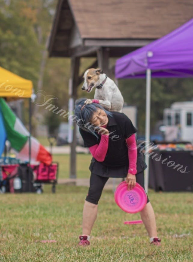 愛犬3頭と共に、ディスクドッグ、フライボール等を楽しんでいるごく普通の愛犬家です。