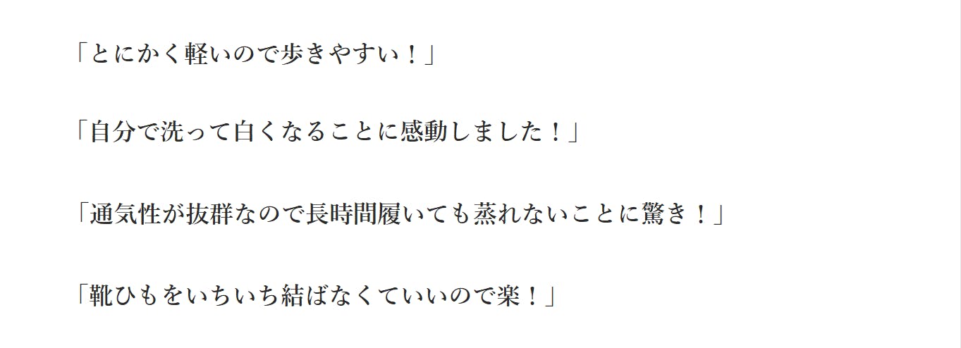 驚きの超軽量。その軽さは足の疲れへの大きなアドバンテージとなります。
