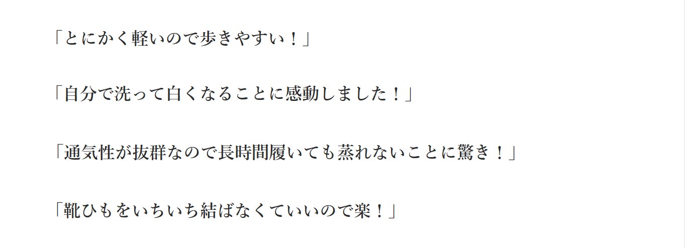 私たちが挑戦したのはどんな天気でも安心して履けて、1日中快適に過ごせる究極の白スニーカー。履きやすい、脱ぎやすい、歩きやすい、洗濯機で洗えてすぐ乾き白さをキープするのが楽。それでいてスニーカー好きな方に喜んでいただけるカッコよさ。ビジカジからお休みの日の普段履きまで、毎日でも履けるボーダーレスなシューズです。