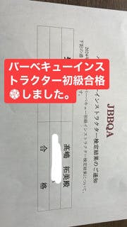 日本バーベキュー協会の主催するバーベキューインストラクター初級の試験結果が届き、見事合格しました。