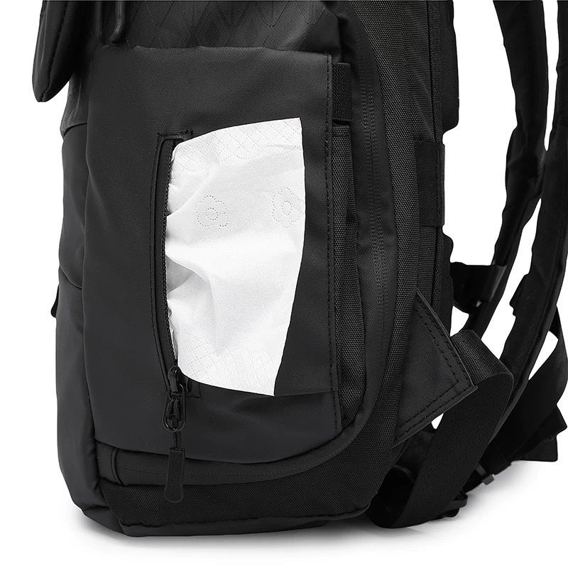 きれいに整理整頓できる両サイドポケットを加えて、ティッシュポケットもあり、セットさえすれば、背負ったままでも一枚ずづ取り出せます。内部へのスムーズなアクセスを実現し、取り出したいものがすぐに手に届きます。