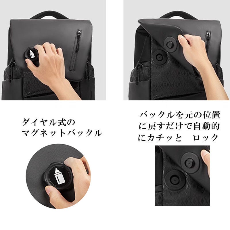 バックルはダイヤル式で、上部から開けるときは回すだけでバッグを開けます。