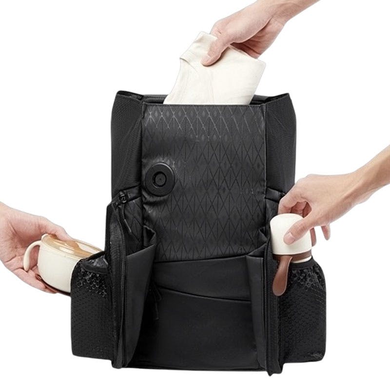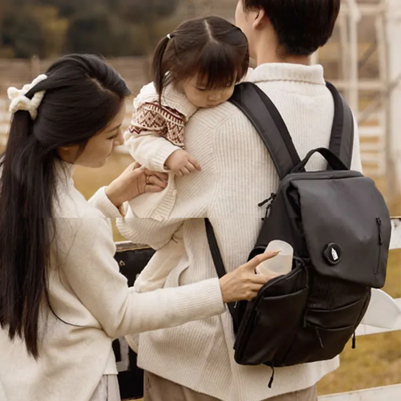 A:シンプルでスタイリッシュなデザインを採用しており、パパも気軽に持ち歩けるよう、おむつ替えや授乳アイテムを効率よく収納できるポケット構造。育児はパパも活躍する時代で、パパのお出かけもさらに楽しく便利になります!