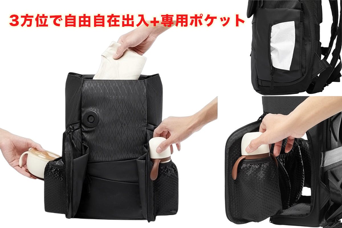 ◯育児現場から生まれた「子育て支援リュックバッグ」 ◯持ちやすさと機能性を追求した「ファーザーズバッグ」 ◯おしゃれなデザインと実用性で、外出や育児をサポート ◯イクメン生活をもっと豊かにする多機能リュックバッグ ◯家族時間を豊かにしながら、育児と自由を両立◯哺乳瓶マークは育児に参加の証