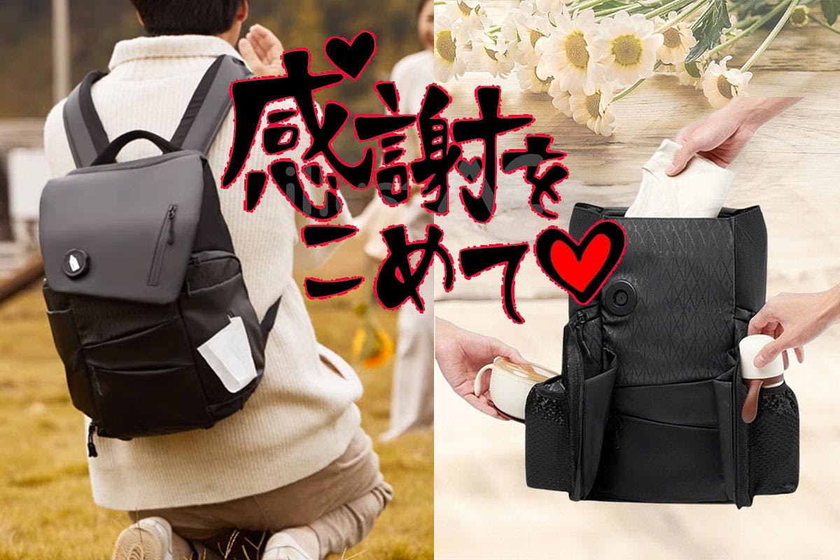 ◯育児現場から生まれた「子育て支援リュックバッグ」 ◯持ちやすさと機能性を追求した「ファーザーズバッグ」 ◯おしゃれなデザインと実用性で、外出や育児をサポート ◯イクメン生活をもっと豊かにする多機能リュックバッグ ◯家族時間を豊かにしながら、育児と自由を両立◯哺乳瓶マークは育児に参加の証