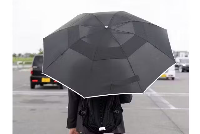 A:幅120cmの大型サイズで、自分と周りを守ってくれる、新しい逆折り式自動開閉折りたたみ傘です。