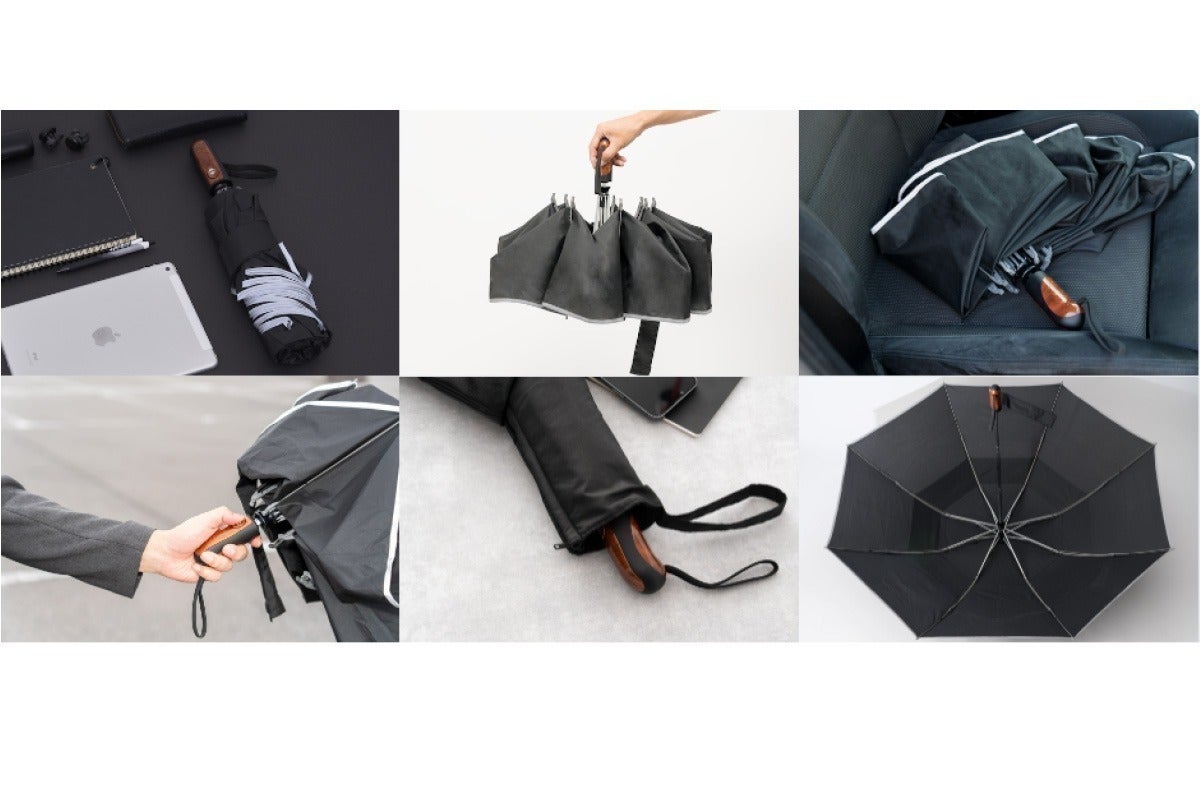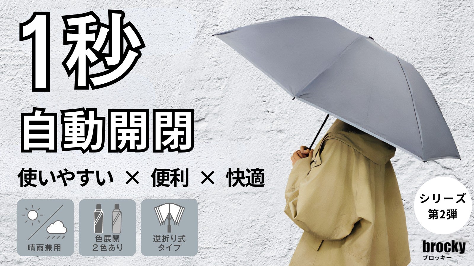 お悩みをすべて解決できる、機能をたくさん詰め込んだワンプッシュ自動開閉逆折りたたみ傘 『brocky』です。