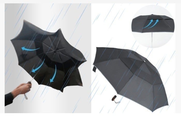 台風やビル風などの風が強い日だと、逆そりして骨が折れてダメになってしまった経験ありますよね。brockyは2層構造で形成されており、強風を受け流してくれるので、ひっくり返りを軽減してくれます。