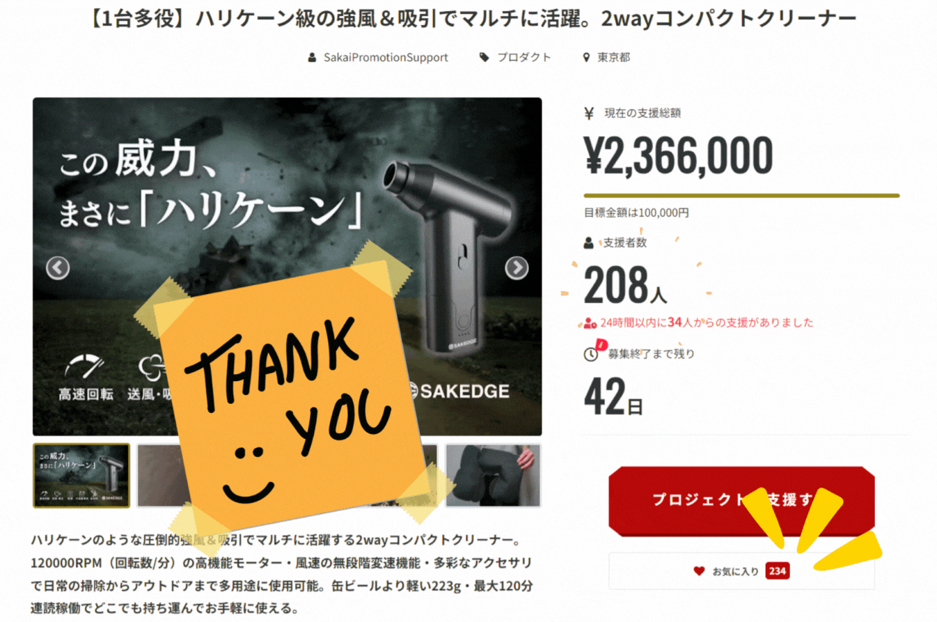 先日スタートいたしました「SAKEDGE 2wayコンパクトクリーナー」プロジェクトは皆様の温かいご支援のおかげで、なんと支援者数200名突破&超早割完売を達成することができました!
