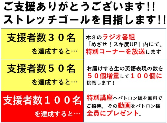 お届けする生の英語表現の数を50個増量して、100個お届けすることに挑戦します。