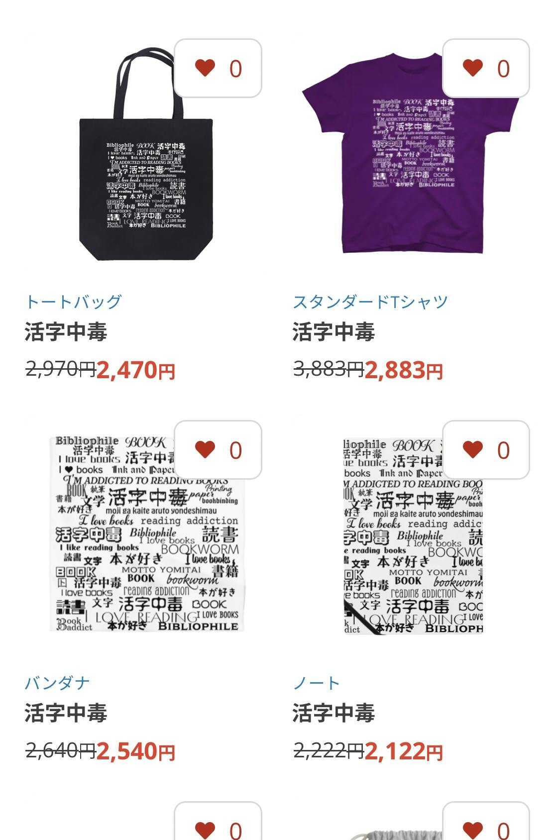 ・活字中毒全面ロゴグッズ(今、通販での販売開始した全面ロゴです。こちらはトレーナーもあるし、スマホケースとかリングノートとか印刷色がグリーンのものとか、兎原がなかなか作れないものがたくさんです)