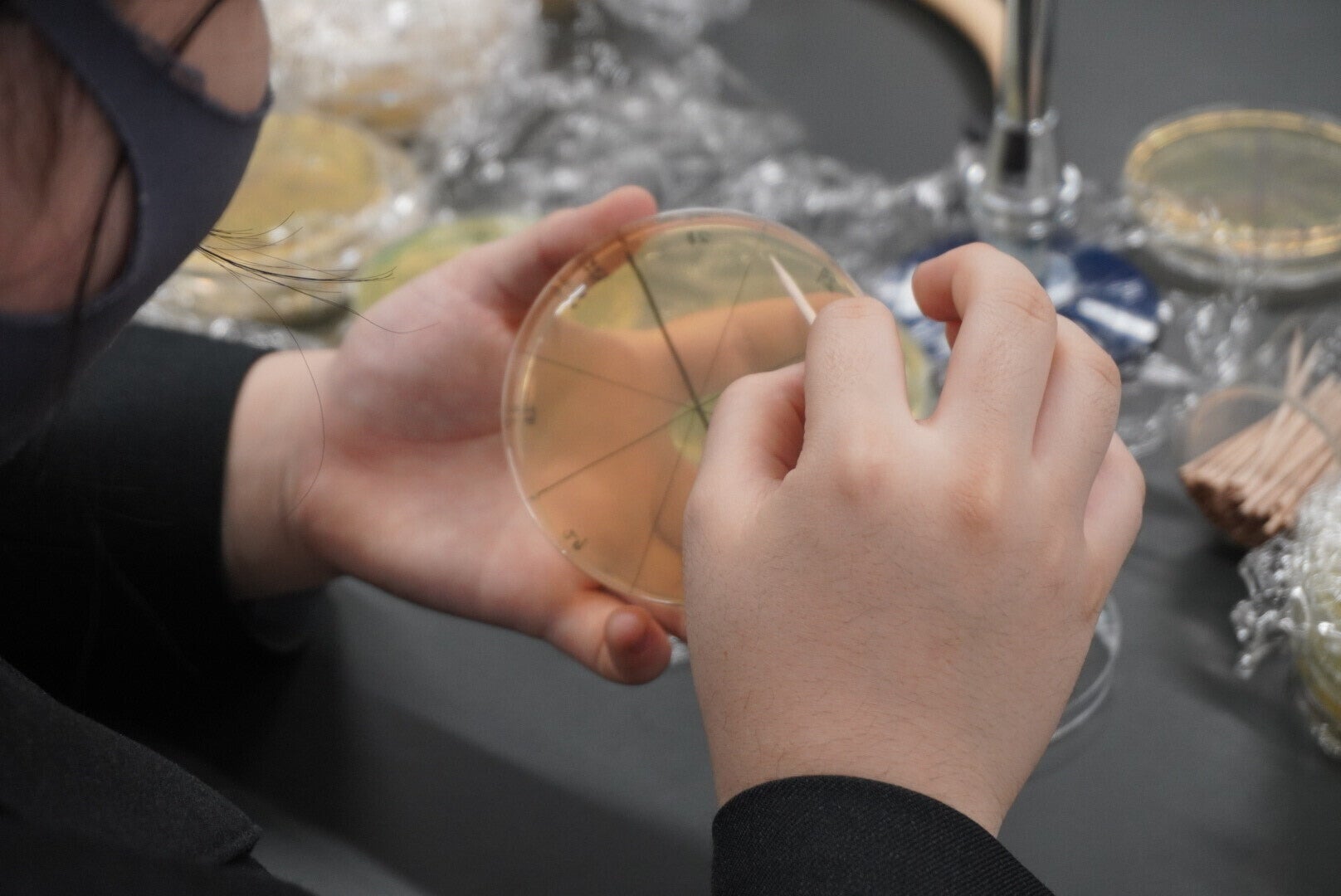 現在は全国から集まったメンバーとともに「界面活性剤が自然環境・人体に及ぼす悪影響をなくす」という目的のもと、遺伝子組み換え技術を用いて納豆菌におけるサーファクチンの高生産を目指しています。サーファクチンとは納豆菌・枯草菌に元々微量含まれている界面活性剤であり、他の界面活性剤の100分の1の量で同等以上の効果を発揮できることで知られています。また、他の菌でもない納豆菌に着目することで、実際に遺伝子組換え納豆菌が洗剤に応用されたときに消費者に受けいれられやすいこと、納豆菌の生産するポリグルタミン酸による水質効果作用の相乗効果が期待されることなど多くの利点があげられます。