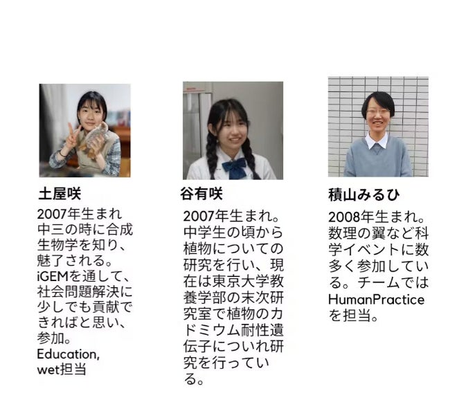 他にも個性あふれる、得意分野を極めたメンバーがiGEM Grand Tokyoには揃っています!他のメンバーの紹介及び詳しい自己紹介等は以下のHPをご覧ください。