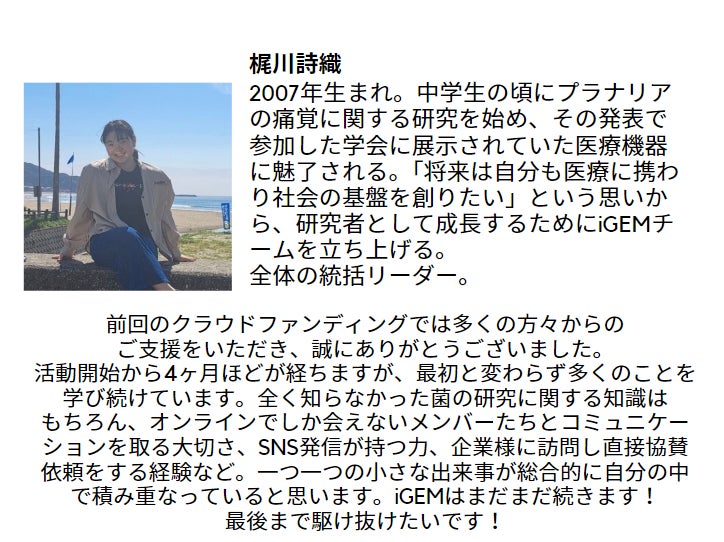研究活動やパリでのiGEMへの参加にあたり、ご支援いただけますと幸いです。よろしくお願いします!