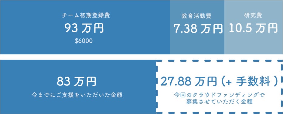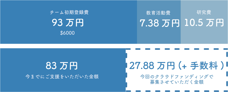 また、本クラウドファンディングでご支援を頂いた分に関しては、チーム登録費の不足分、教育活動費、研究費へ充てさせていただきます。
