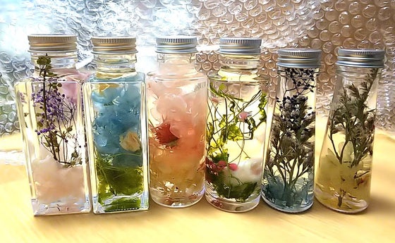 今日は、デザフェスで販売するハーバリウムを制作しました。