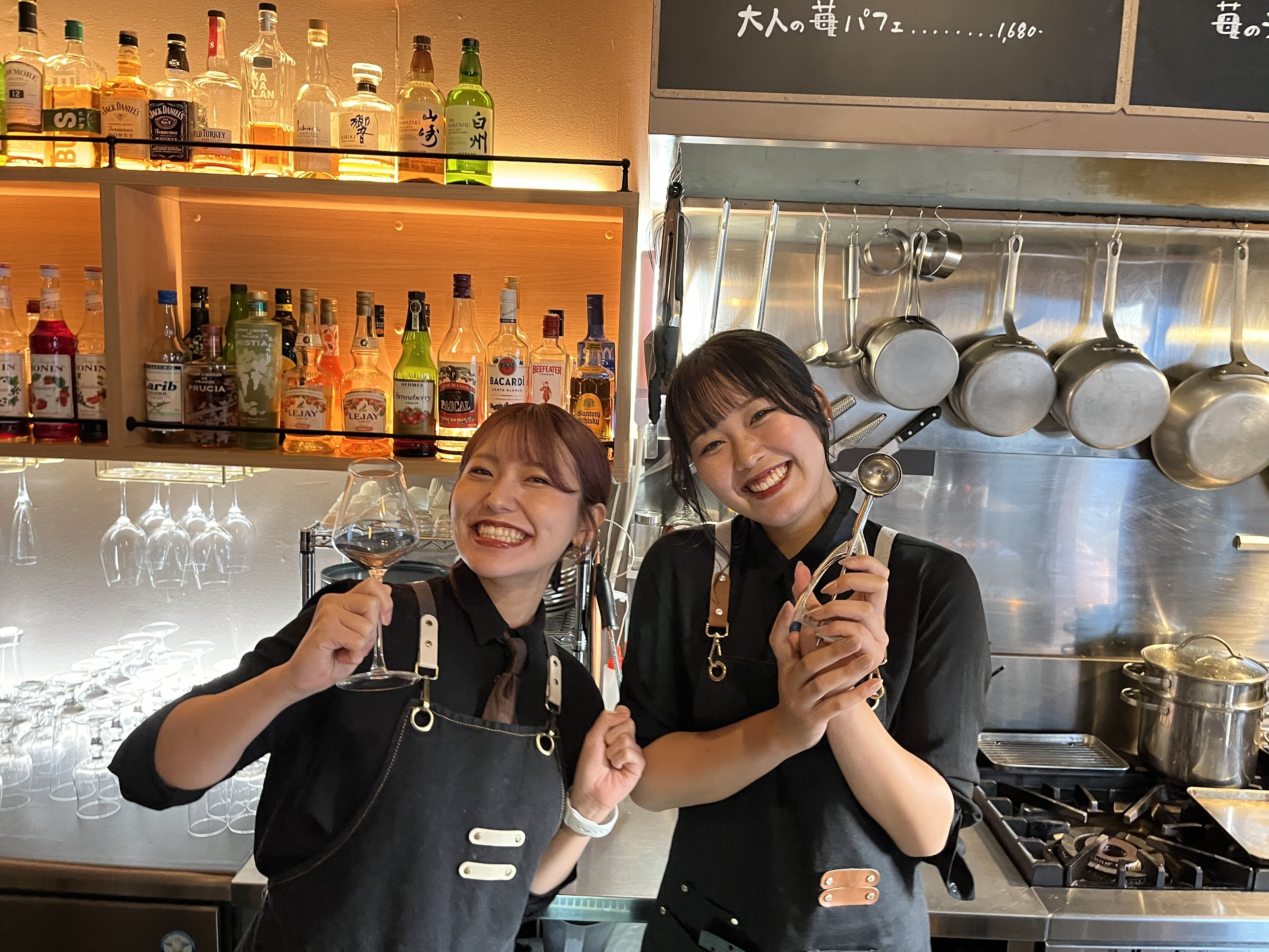 お酒と果実KANJIには現在9名のスタッフが在籍しています!各々個性強めw様々なバックグラウンドが入り混じり共に刺激し合い支え合って今のKANJIを作ってくれています!昨日のディナースタッフはゆりの&みずきこの写真の15秒後お客様をスマートにお出迎えしてくれました(^^)現スタッフが1人も欠ける事なくスペシャリティ・パフェ専門店KANJIで働き続けられるように。皆様のご支援を通して、リニューアル後の環境整備を行います!みんなでいい店作ろうな(^^)!
