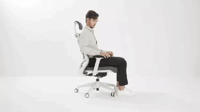 背もたれに寄りかかると、膝が自然に上がる、人間工学に基づいたメカニズムを採用。リクライニング時に腰に負担がかかりにくい。