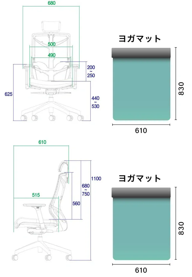 ヨガマットほどのスペースがあればご使用できます。一人暮らしのお部屋でもお使いいただけます。