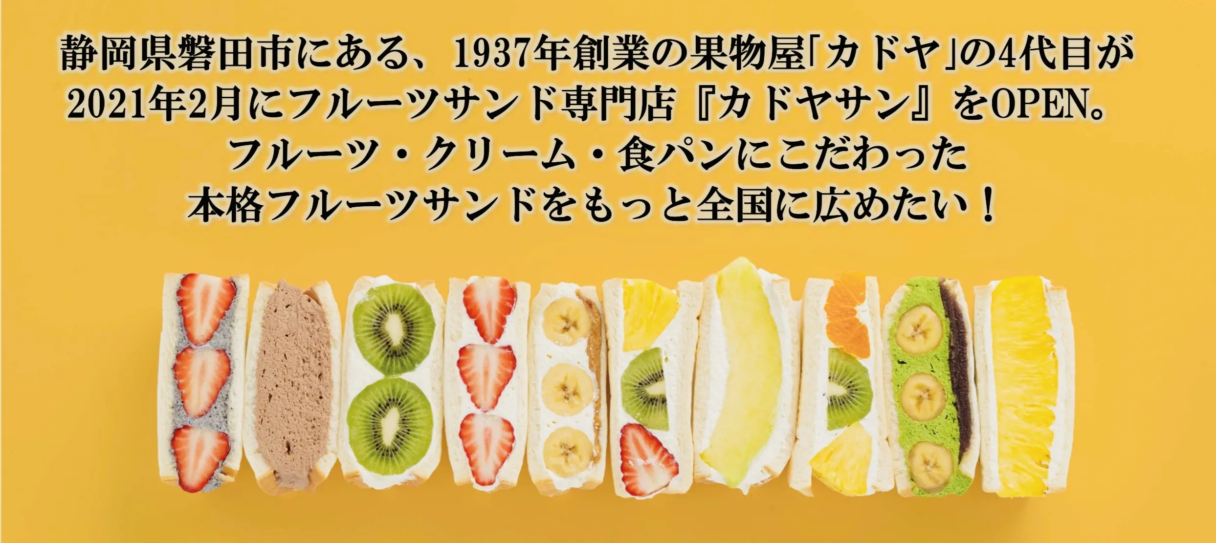 1937年創業の果物屋「カドヤ」の4代目となる自分が、2021年2月にカドヤ店舗を改装してフルーツサンド専門店の『カドヤサン』をオープンしました。