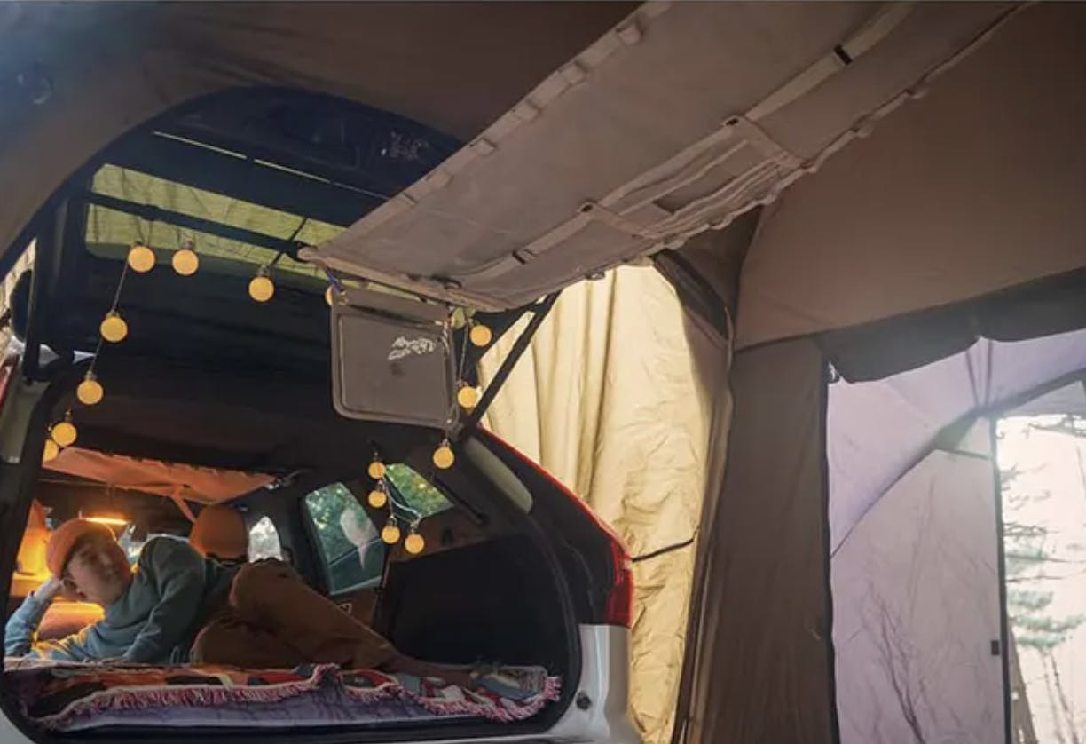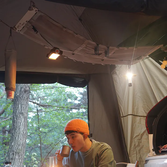 夜はランタンをひっかけるだけで、ムード満点のキャンプに大変身。