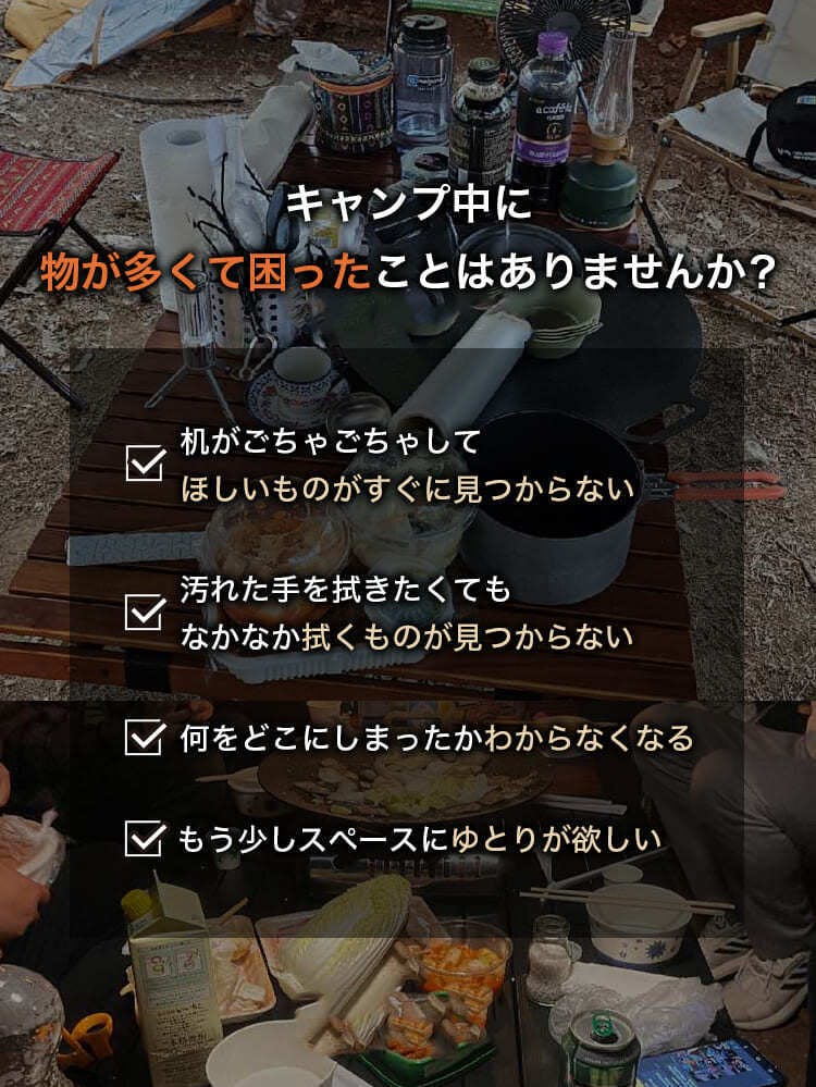 キャンプは何かと必要な物が多くて、机の上が散らかってしまった経験はありませんか?