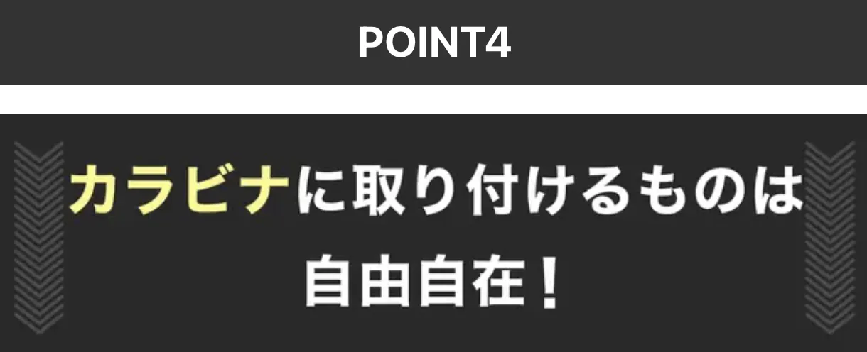 より多くの物を取り付けたい方は、市販のカラビナを取り付けることも可能です。