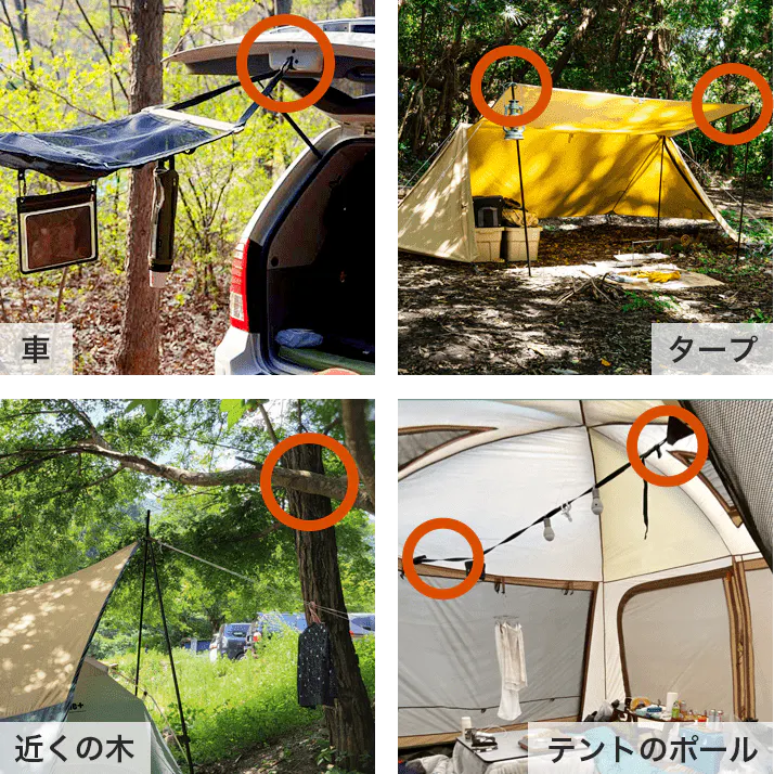 ①机の上・テントの中など、頭上のスペースを有効活用!
