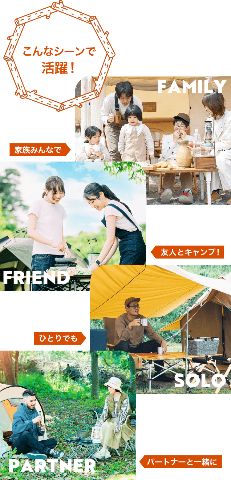 テントの色とも馴染みやすく、オシャレなキャンプを演出します。