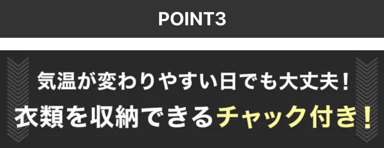 ③チャック付きで大切なものもスッキリ収納!アウターも入れられる!