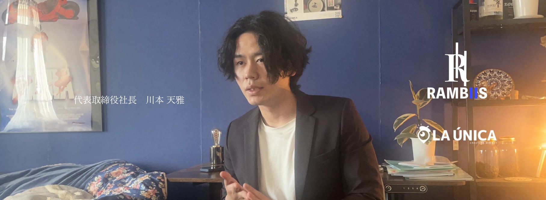 RAMBIIS株式会社 代表取締役社長の川本と申します。当初は、自分はインテリアや美術品が趣味程度でこの事業を始めようとしていました。しかし、この事業を通してアーティストや色々な美術関連の事情を知っていくことで「アートをインテリアとして取り入れることをより多くの人の日常になってほしい。」という想いが強くなりました。従来の美術品は、投資としての価値などのイメージが強く、高価なものとして扱われてきました。しかし、インターネットが普及したことで普段使うものや、誰でも手の届く素敵な作品がたくさん溢れています。そんな作品らをもっと当たり前に人が買うものにしていきたいです。弊社は、人の当たり前を自分たちが作ることをビジョンとして掲げております。自分たちのサービスが、お部屋やオフィスをおしゃれにしたい人々が当たり前に使うサービスとなるように、この事業に一生懸命頑張って取り組んでいきます。皆様と一緒に美術業界を盛り上げられることを切に願っております!