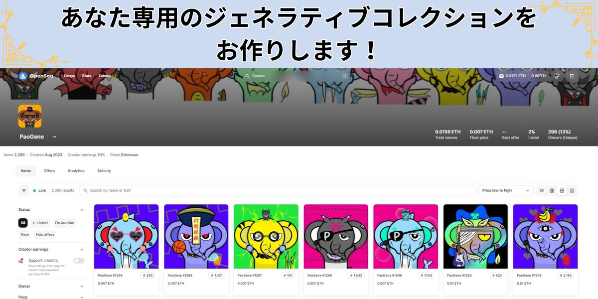 あなただけのジェネラティブコレクションを制作致します。