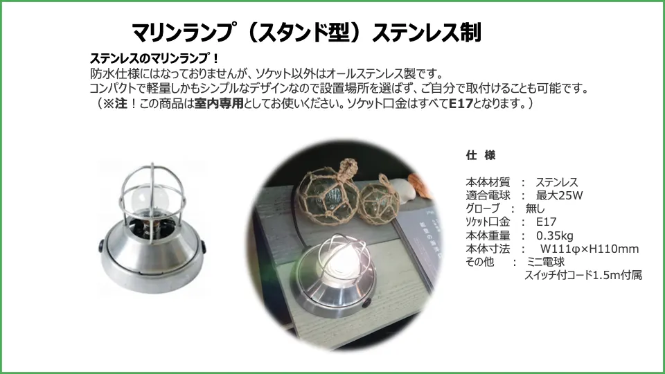 ★2.マリンランプ(スタンド型)ステンレス製