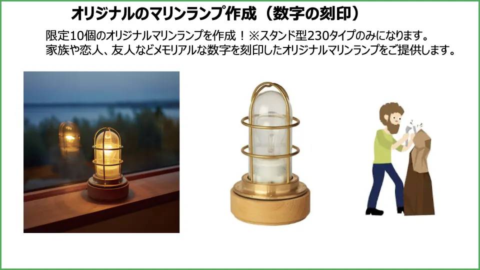 ★6.オリジナルマリンランプ作成(刻印可能な数字は最大8桁となります)