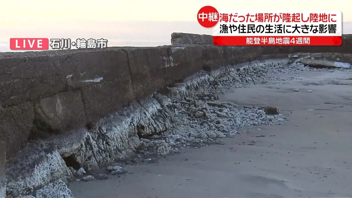 海だった場所も最大およそ4メートル隆起しており、サザエやアジなどがとれる場所だった輪島市黒島漁港では、海だった部分が隆起した影響で、海底の岩が見えています。輪島港でも隆起する前は100隻ほどの船が常時漁に出ていましたが、今は漁船も故障し再開の目処が立っていません。