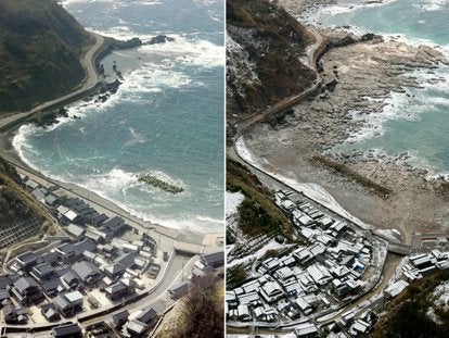 大きく損壊した漁港