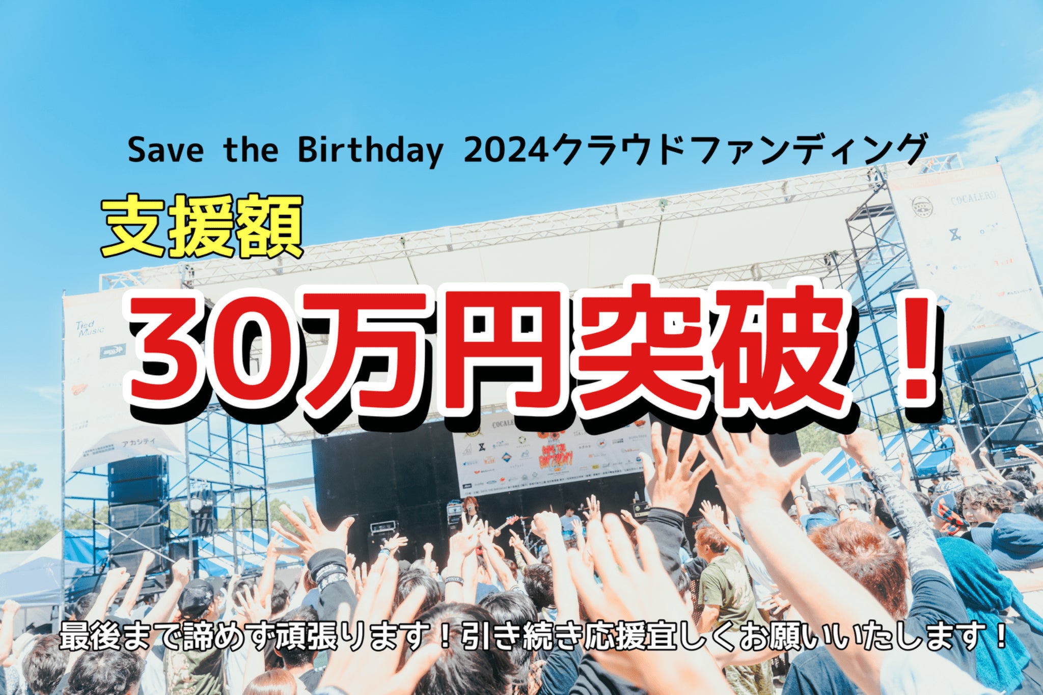 Save the Birthday 実行委員長の田井中です。毎日騒がしく宣伝させてもらっているセブザバの成功・存続を賭けたクラウドファンディングですが、先ほど支援額が30万円に到達しました!これまでにご支援いただいた皆さま、プロジェクトの拡散にご協力いただいた皆さまに心より感謝申し上げます!