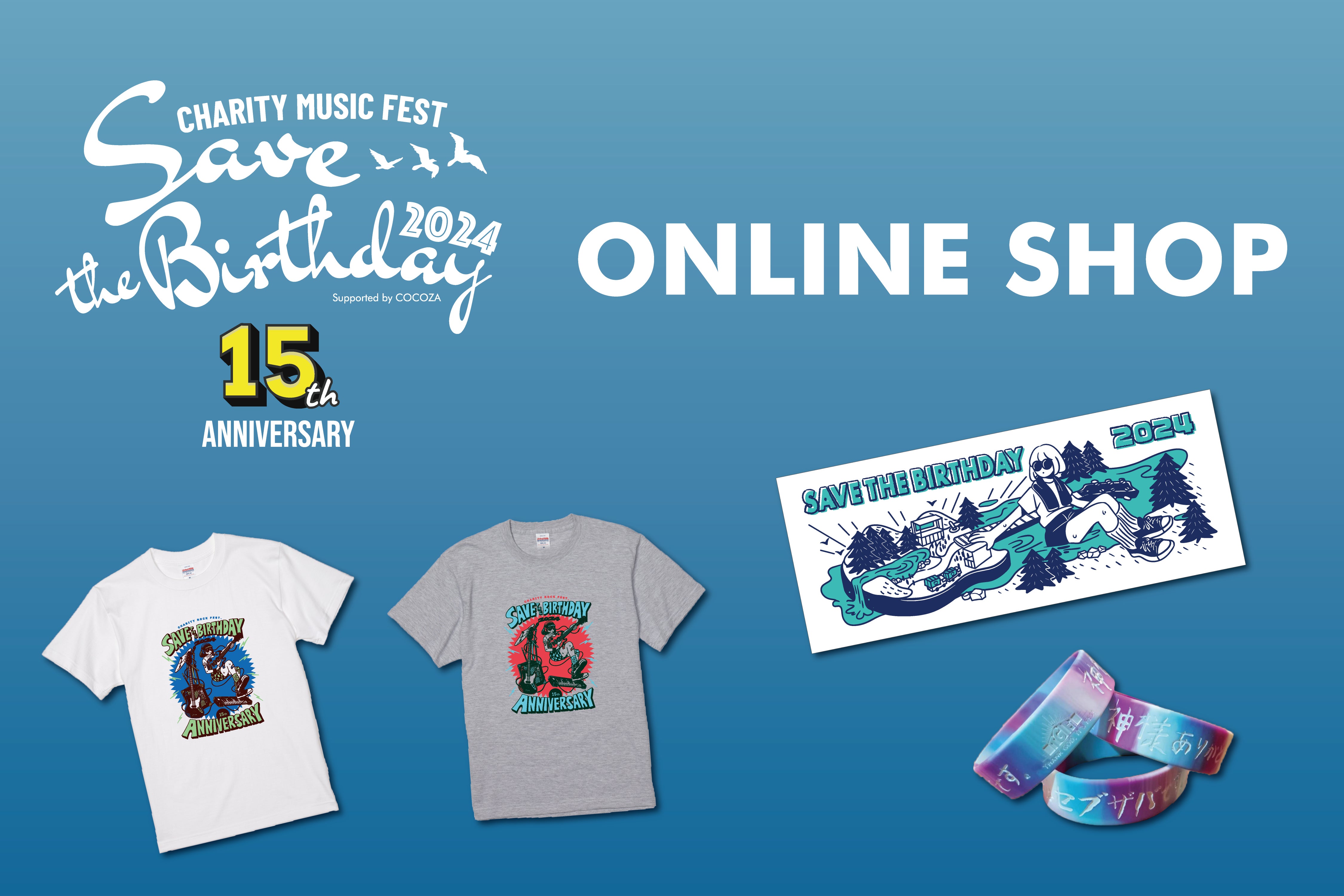 また、今年のチャリティーロックフェスSave the Birthday のチャリティー活動として、当日販売予定だったオフィシャルグッズを特設WEBSTORE で販売し、売上から必要経費を除いた分をチャリティー募金として、滋賀県応援寄付(子育て支援、児童虐待防止など)、そして震災などの自然災害で被災した地域の子どもたちを支援する基金、団体に寄附する予定です。