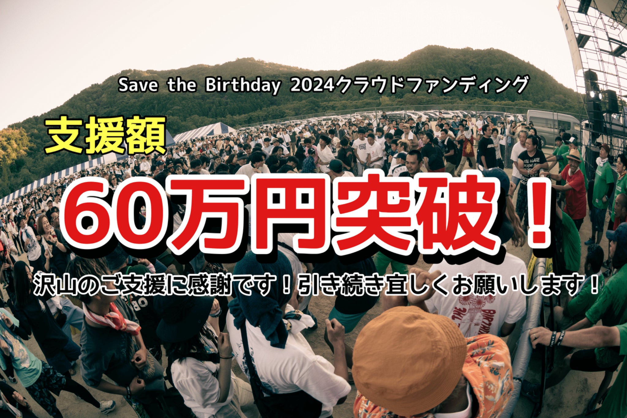 いつもSave the Birthday を応援いただきありがとうございます!実行委員長の田井中です。セブザバの成功・存続を賭けたクラウドファンディングの支援額が昨晩70万円を突破しました!これまでにご支援いただいた66名の皆さま、そしてプロジェクトの拡散にご協力いただいた皆さまに心より御礼申し上げます!79日間に及ぶクラウドファンディングの終了まであと13日となりました!現在の達成率は35%で、目標を達成する為にはあと129万7,750円のご支援が必要となります。無料フェスを続ける為に何度もクラファンで運営資金を募る事に、違和感を感じる方もおられると思います。僕自身もこの方法が正しいのか、いまだに答えは出せず葛藤を繰り返す毎日です。きっと正解はありません。ただ、15年間皆さんと一緒に必死にバトンを繋いできた沢山の人の愛で溢れる、開催できる事自体が奇跡でしかないチャリティーロックフェスをなんとしても守りたい。その気持ちだけでがむしゃらに前に進もうとしています。13日後、クラファンの結果がどうなるのかはまだわかりませんが、後悔はしないようにゴール目指して最後まで走り抜きたいと思います。必ず、意味のある1日にしますので、僕の想いに共感、賛同してくださる方がおられましたら、ご支援いただければ嬉しいです!自分がやりたい事なのだから全力でやるのは当たり前。1人でも多くの人に気持ちが伝わるよう全力をこえた超超超全力で挑みます!最終日まで応援宜しくお願いします!!KEEP THE FIRE GOING