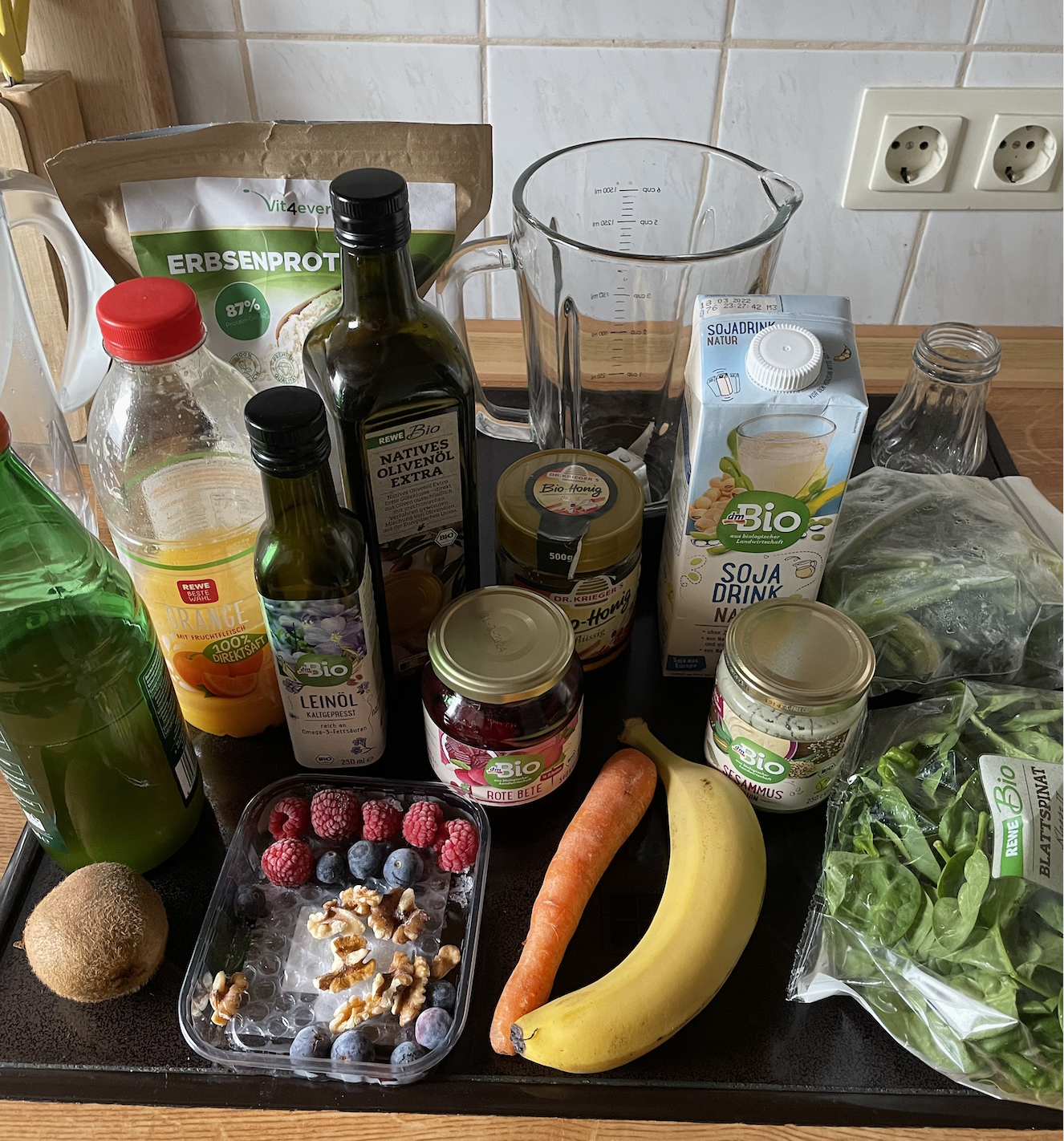 ゴウソンがドイツでプレイしていたときに、飲んでいたスムージーの材料(真ん中のビンに入っているのがビーツ!)