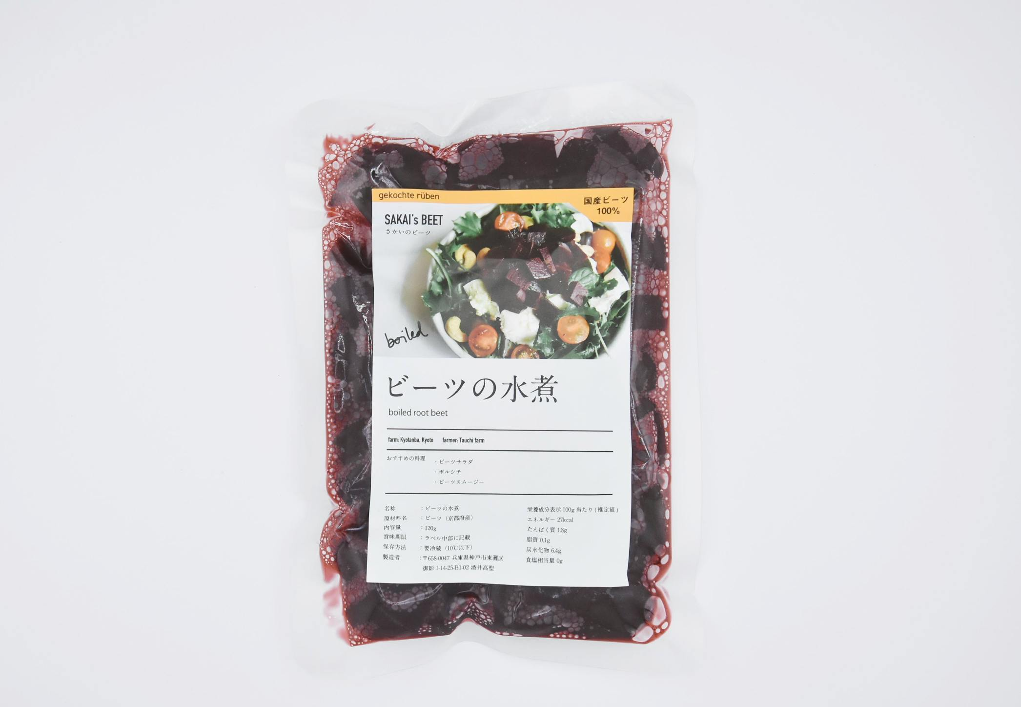 僕らの一番最初の商品はダイスカットした「ビーツの水煮」です。初めてビーツを食べる人でも「気軽に」「美味しく」食べてもらえるために、100回を超える試作を繰り返し、真空加熱をしたダイスカットの水煮のベストなレシピを導き出し商品化しました。