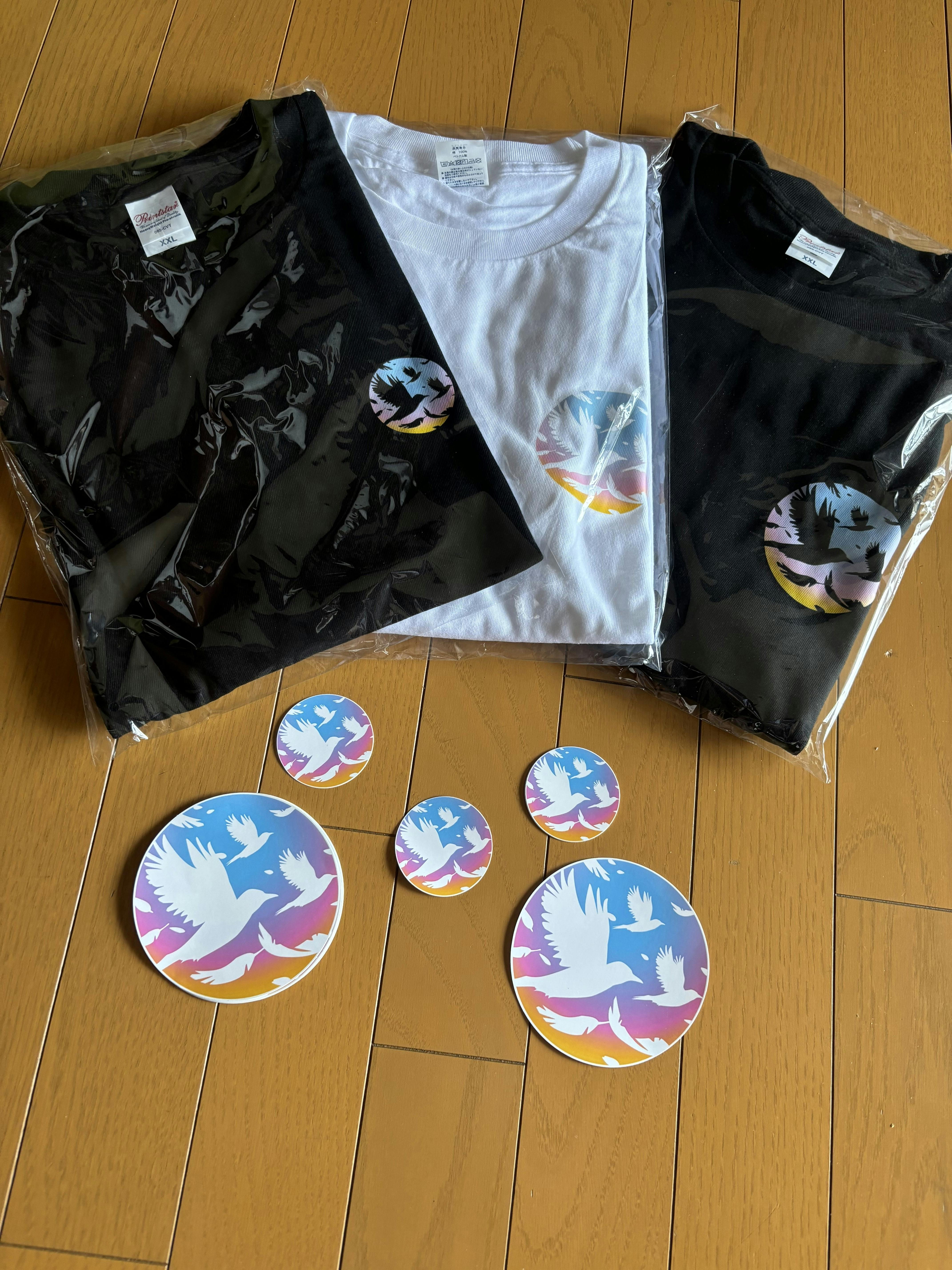 Tシャツ、ステッカーも発注済みで10月にら発送できますのでお待ちください。