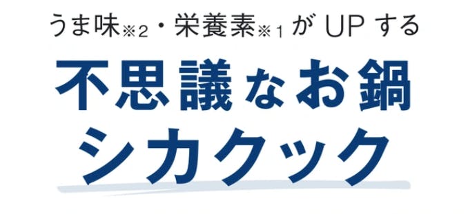 鍋で3分ゆでたものと、シカクックマルチパンで3分無水調理したものを比較結果、ほうれん草(100g)の遊離アミノ酸(18種)の通常鍋でのゆで調理では132mgに対し、シカクックマルチパンの無水調理では252mg(190.9%)試験機関:食品分析開発センター2022年11月