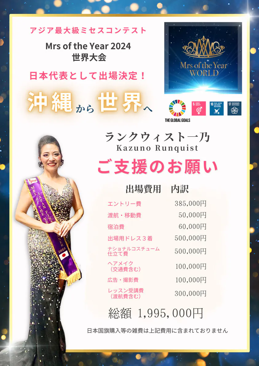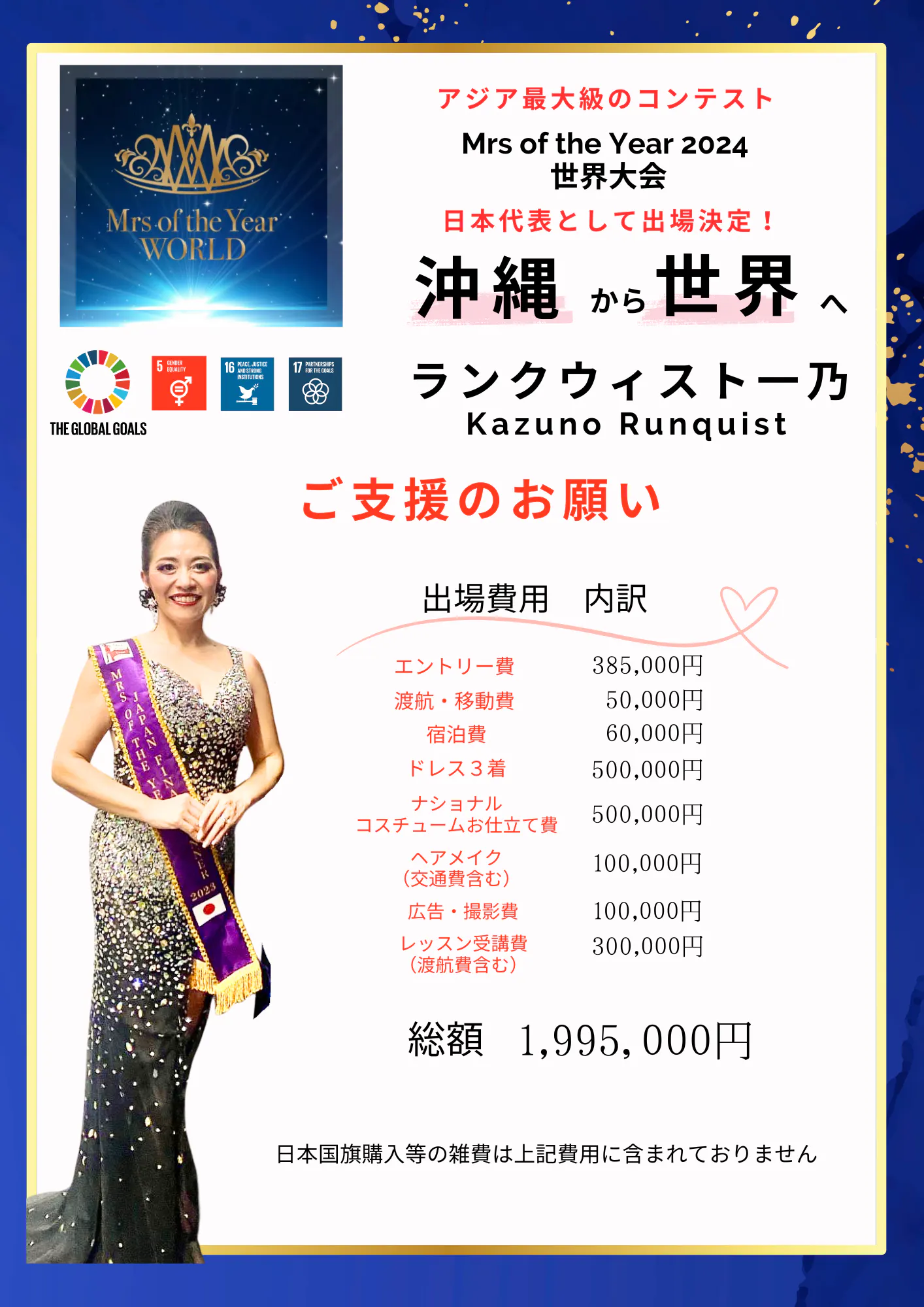 Mrs of the Year 2024 世界大会 日本代表 ランクウィスト一乃(カズノ)と申します。
