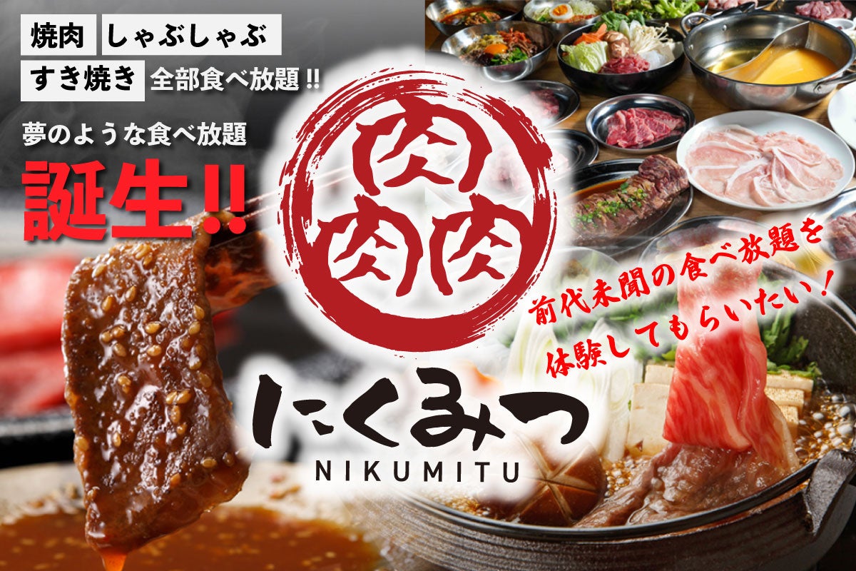 【焼肉・しゃぶしゃぶ・すき焼きが全部食べ放題】になる肉の食べ放題専門店「肉肉肉(にくみつ)」は都内を中心に飲食店経営を行う「株式会社FILLERS」により、2024年3月9日(土)池袋にニューオープンしました。