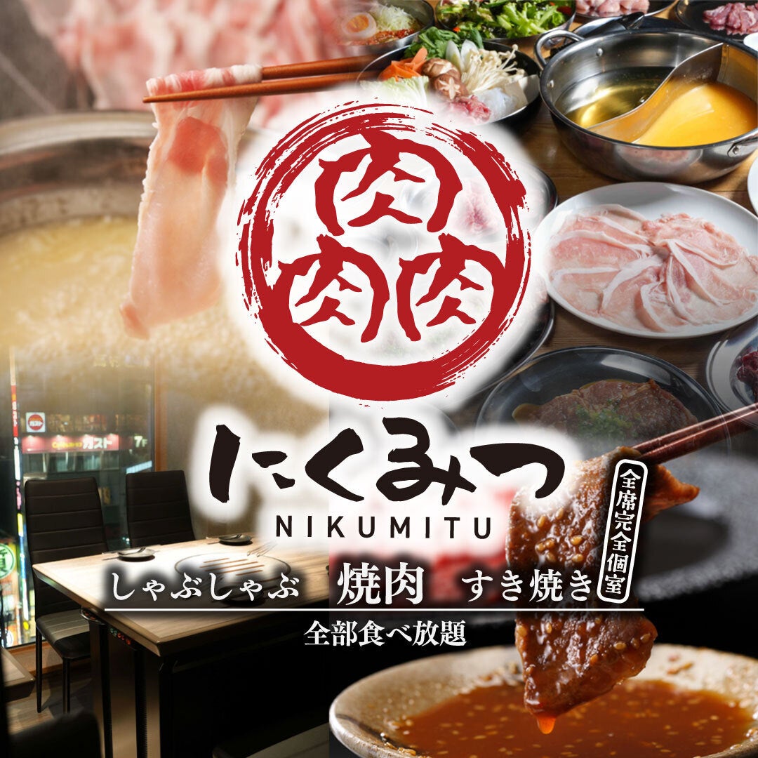こんにちは。焼肉・しゃぶしゃぶ・すき焼きの食べ放題専門店『肉肉肉(にくみつ)』です。