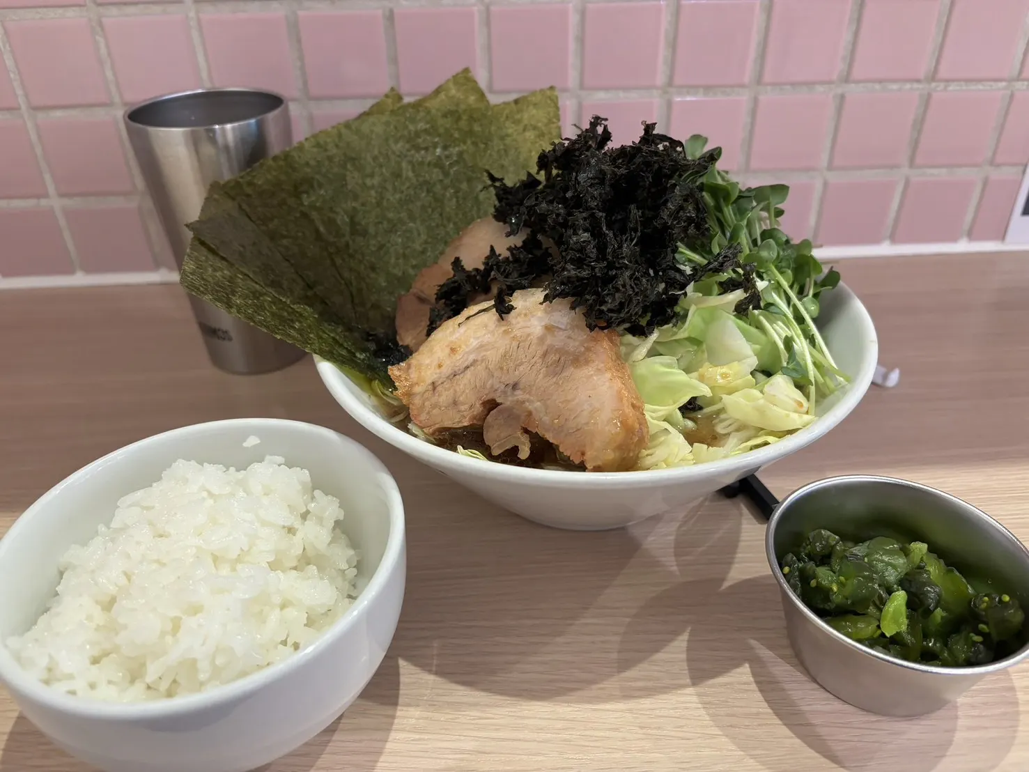 にんにくなどの無料トッピングも豊富で嬉しいしありがたいので新店舗でもぜひそのまま継続して頂きたいです🧄