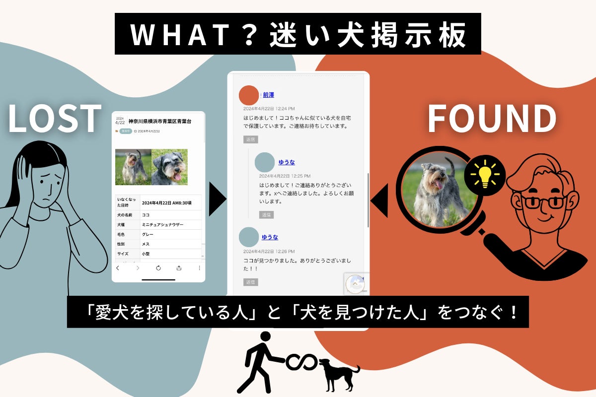 地震発生時から各SNSで行方不明犬を捜索する情報が溢れて錯綜し、SNSの特徴として多様な情報が流れ、『捜索中の犬が見つかったのか』、『どの犬が現在行方不明なのか』リアルタイムで確実な情報を知る術がありませんでした。誰かが情報を一時的にまとめても、状況は常にアップデートされ続け、時系列で追えない問題は、今後の日本における様々な災害を想定した時、災害時の愛犬捜索をSNSへ頼ることについて限界を感じ、同時に大きな不安を抱きました。「災害が都心部で起きた時、迷い犬が多すぎてパニックになるのではないか?」