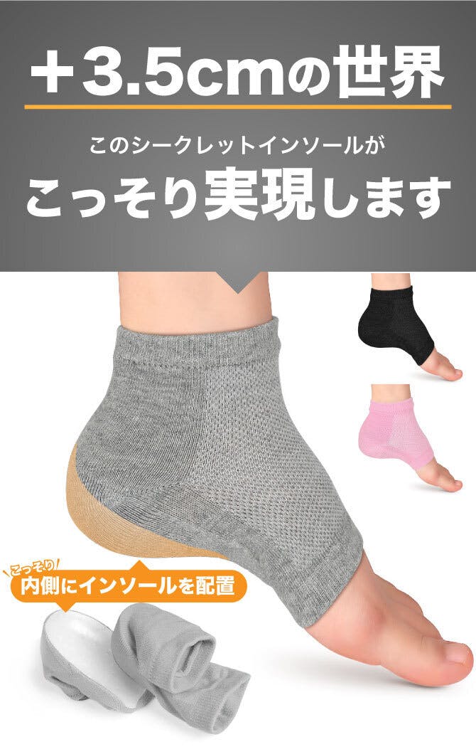 靴下の中に履くタイプのシークレットインソールなので、外から見えずにこっそり身長アップ!